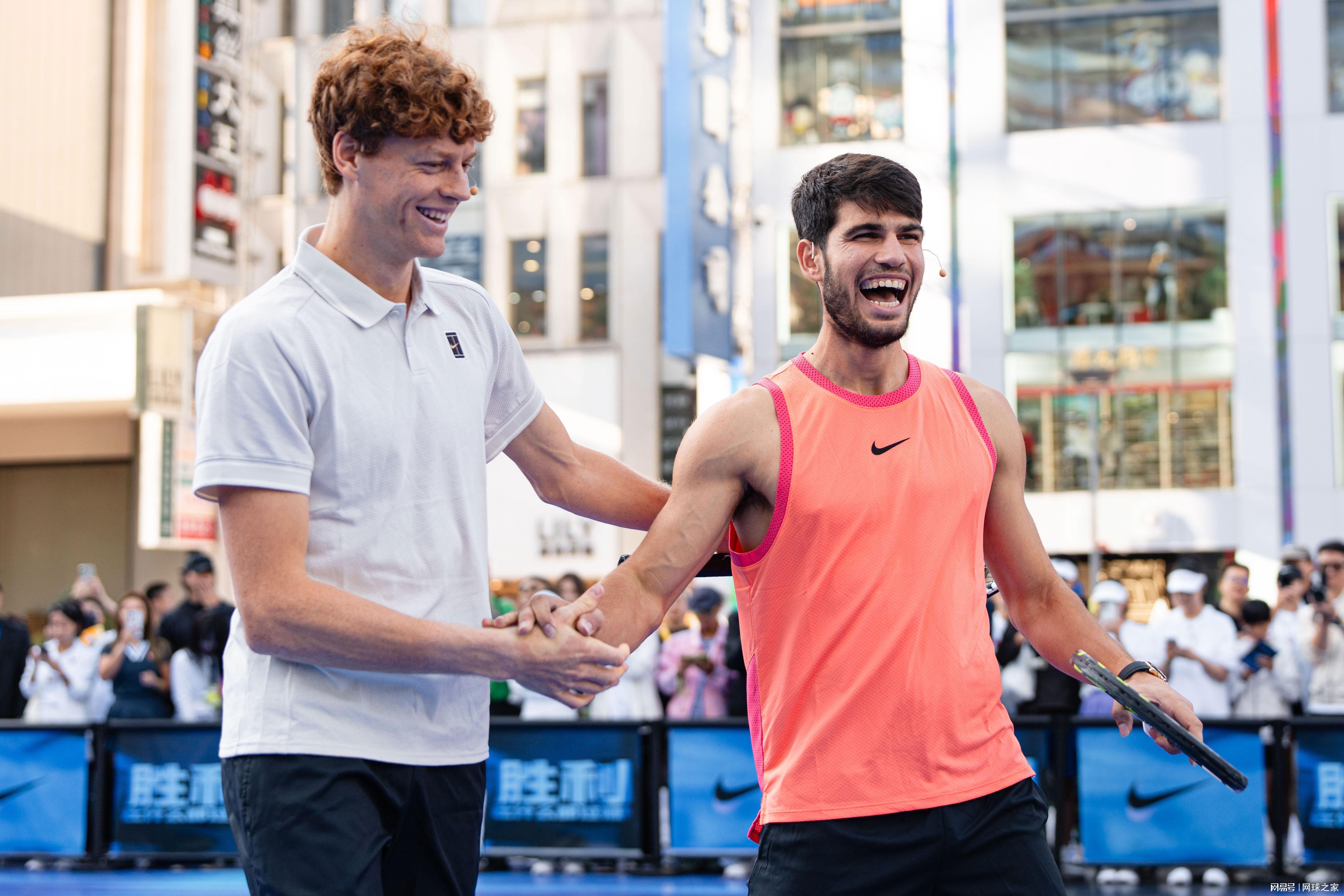 阿尔卡拉斯和辛纳在出席这项名为“现代卡超级比赛”的表演赛新闻发布会时,两人也是满面春风,脸上从始至终都荡漾着开心的笑容。